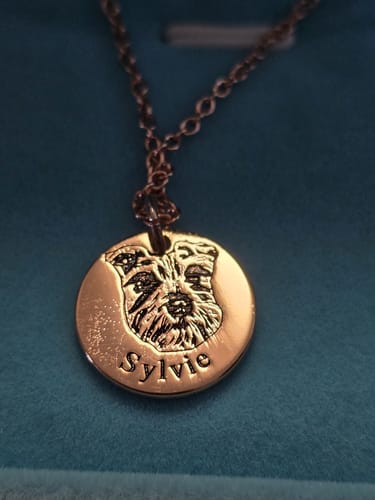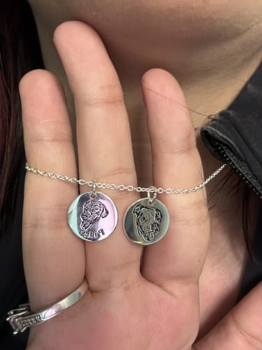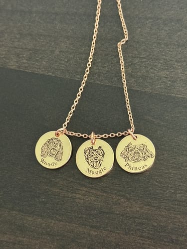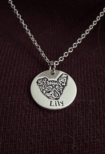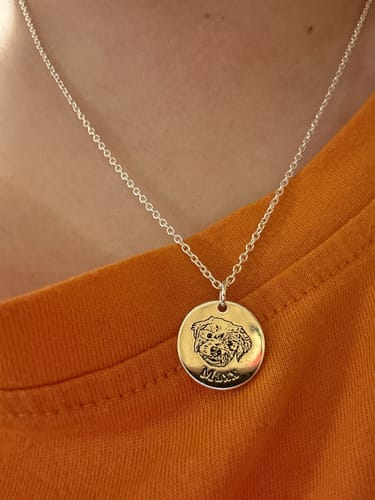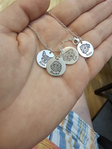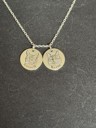 Answer 3: Absolutely! Each necklace features a photo-realistic engraving created by skilled artists, capturing your pet's unique features down to the smallest details, from their whiskers to their smiles. Every piece is custom-made, ensuring that your necklace is one-of-a-kind.